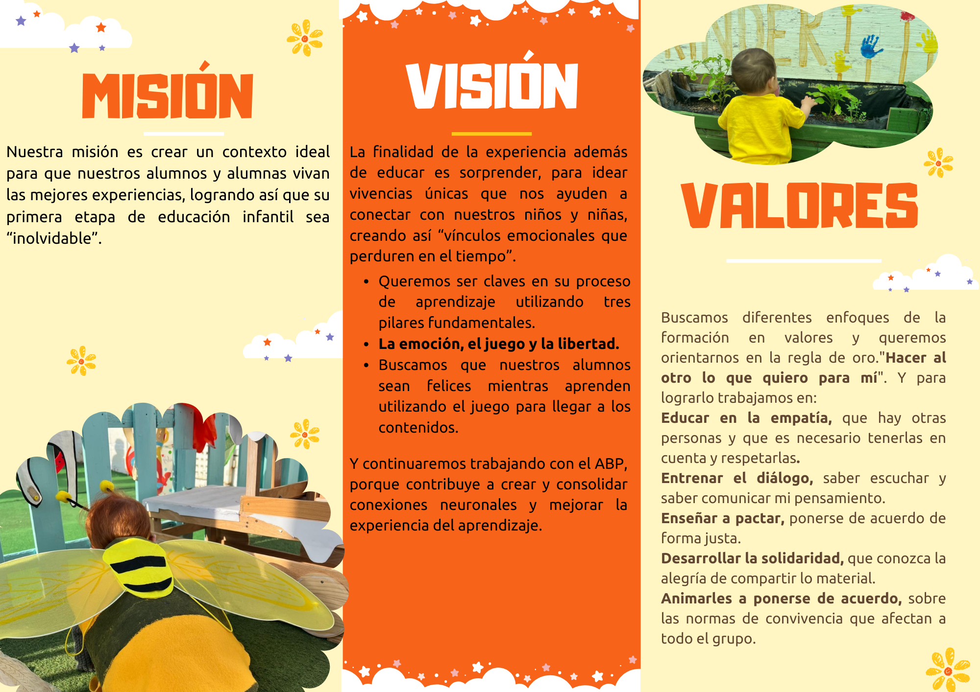 Somos un centro infantil concertado, que prioriza las experiencias físicas y sociales sobre el uso de las pantallas digitales en el primer ciclo de educación infantil. Creamos situaciones de aprendizaje adecuadas a la edad y ritmo de cada uno de nuestros alumnos y alumnas a través de experiencias prácticas y significativas que les permitan el contacto directo con la naturaleza. Nuestro proyecto educativo utiliza como metodología el aprendizaje cooperativo, el ABP y la educación holística. Ya que nos han dado muy buenos resultados y buena acogida por parte de nuestros niños y niñas, al igual que una excelente participación por parte de nuestras familias.